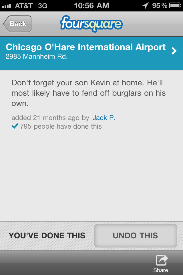 August 28, 2011 by Kanyi Leave a comment Essays airports / chicago / foursquare / o'hare naveen: dascola: minusmanhattan: Foursquare pro tip. Haha. Love this. moments like these ‘extending’ a feature are my most favorite Related
